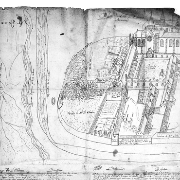Les dessins laissés par les moines au XVIIe siècle permettent de mieux comprendre l’articulation des bâtiments claustraux. Les premiers sont réalisés par les moines bénédictins de Saint-Maur entre 1625 et 1629 et permettent de retracer l’organisation matérielle de l’abbaye à la fin du Moyen Âge et au début de l’époque moderne. Quelques années plus tard, en 1650, un certain Dom Cottron en réalise un nouveau, beaucoup plus clair et précis.