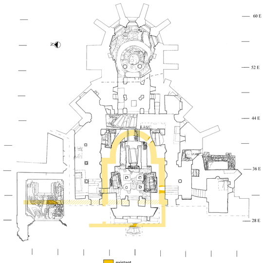 Avant-nef, plan archéologique avec restitution du XIe siècle