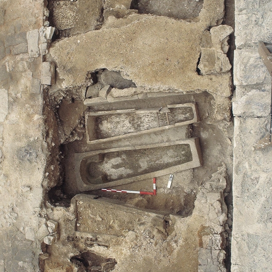 Avant-nef, plan archéologique du IXe siècle restituant la première avant-nef et l’extrémité occidentale de la basilique