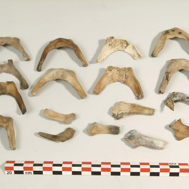 At the fore of the ship, close to what has been identified as the kitchen, several hyoid bones of both pigs and cows were discovered in an small area. This attests to the existence of preserved tongue among the ship's supplies.