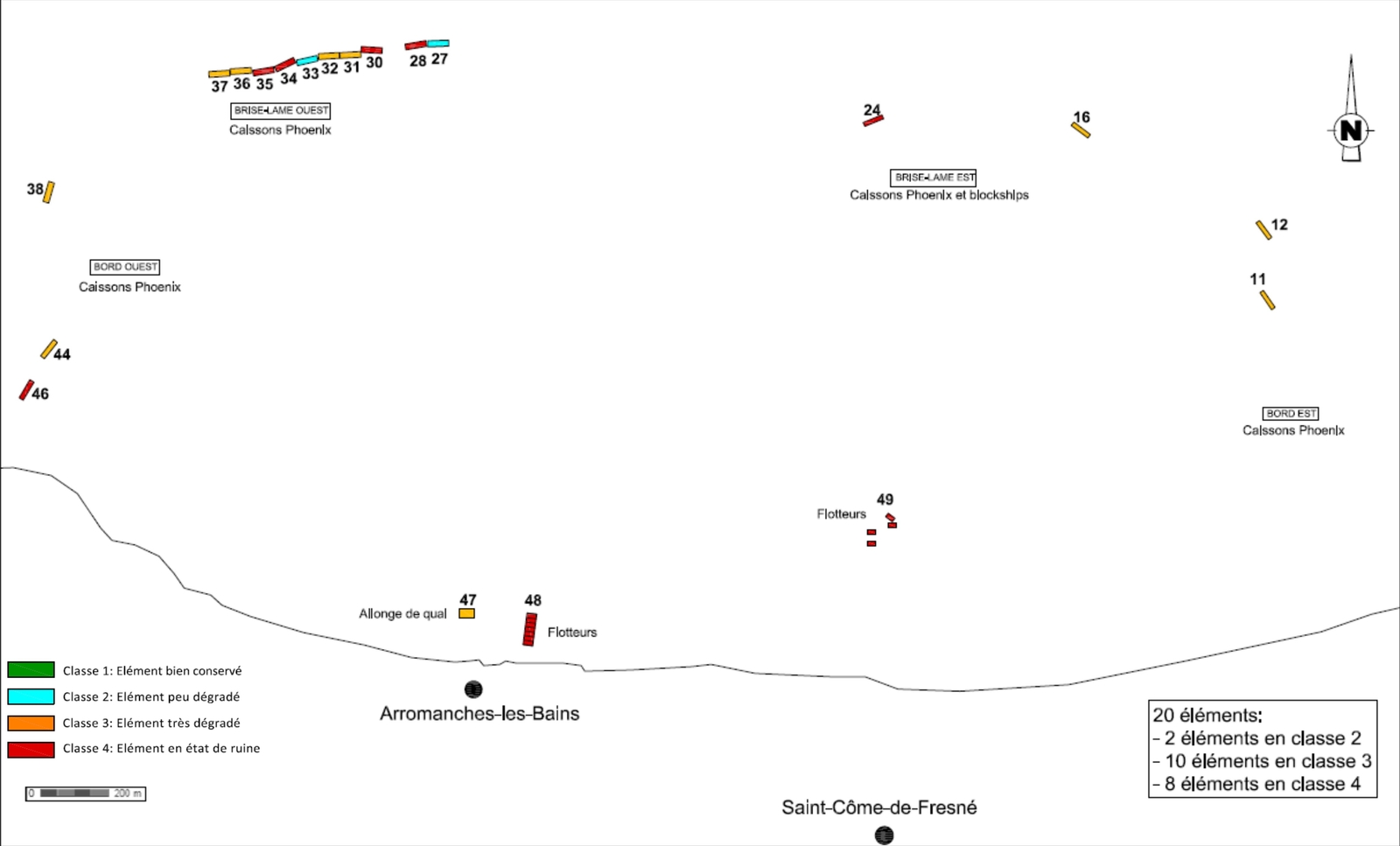 Map representing the projected evolution of the remains of Mulberry B in 2075