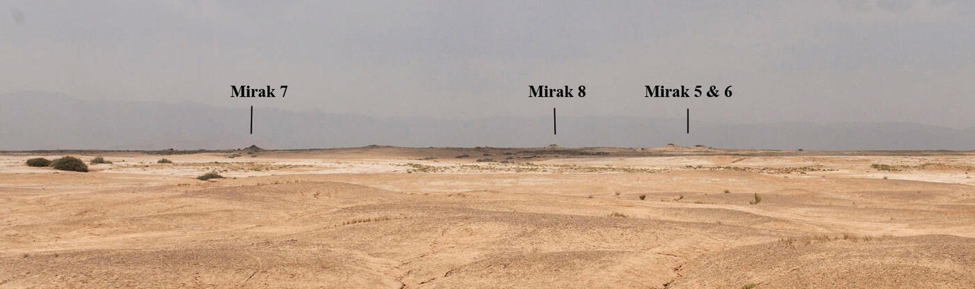 Localisée à l’extrême nord du désert central iranien, au sud des piémonts de l’Alborz, la localité de Mirak dans la province de Semnan est connue pour l’abondance des pierres taillées en surface et son environnement désertique et aride. Elle a livré les vestiges de plusieurs périodes d’occupation par des humains du Paléolithique datées entre environ 25 et 50 000 ans.