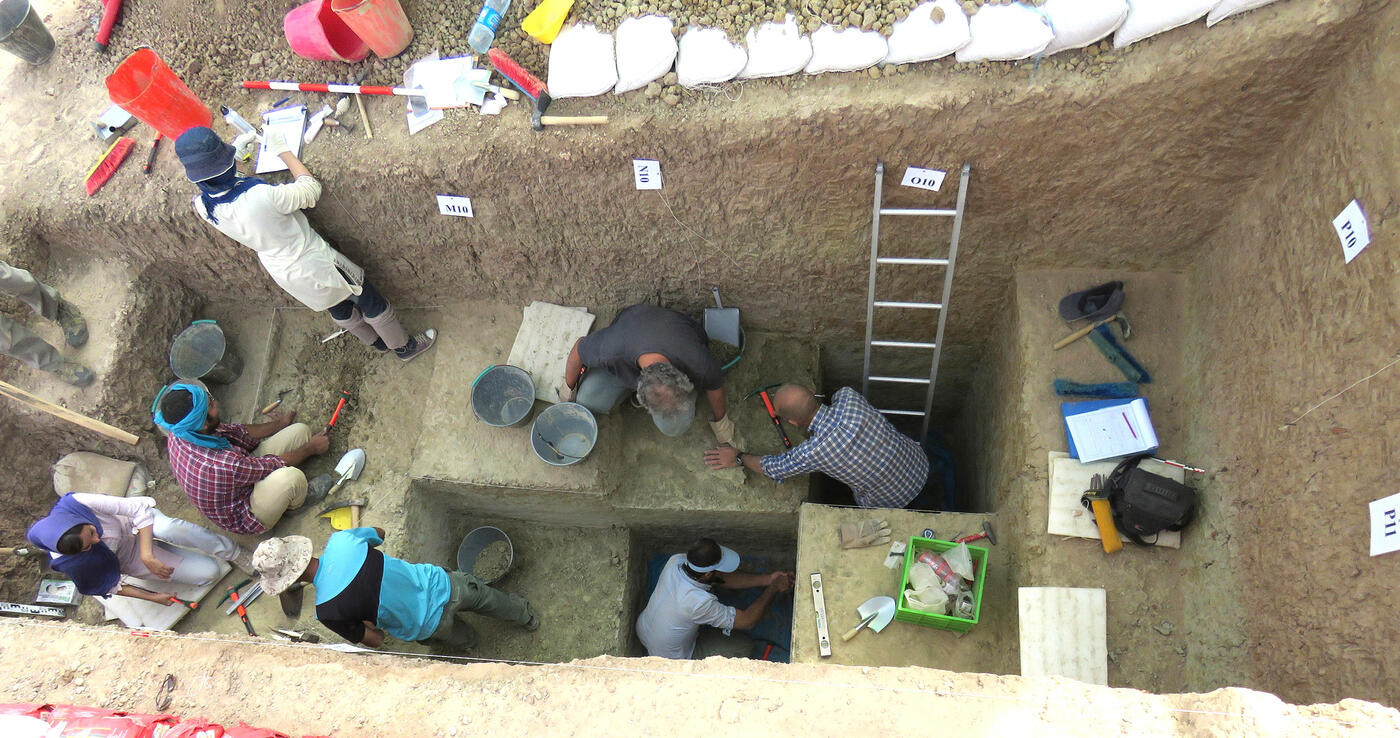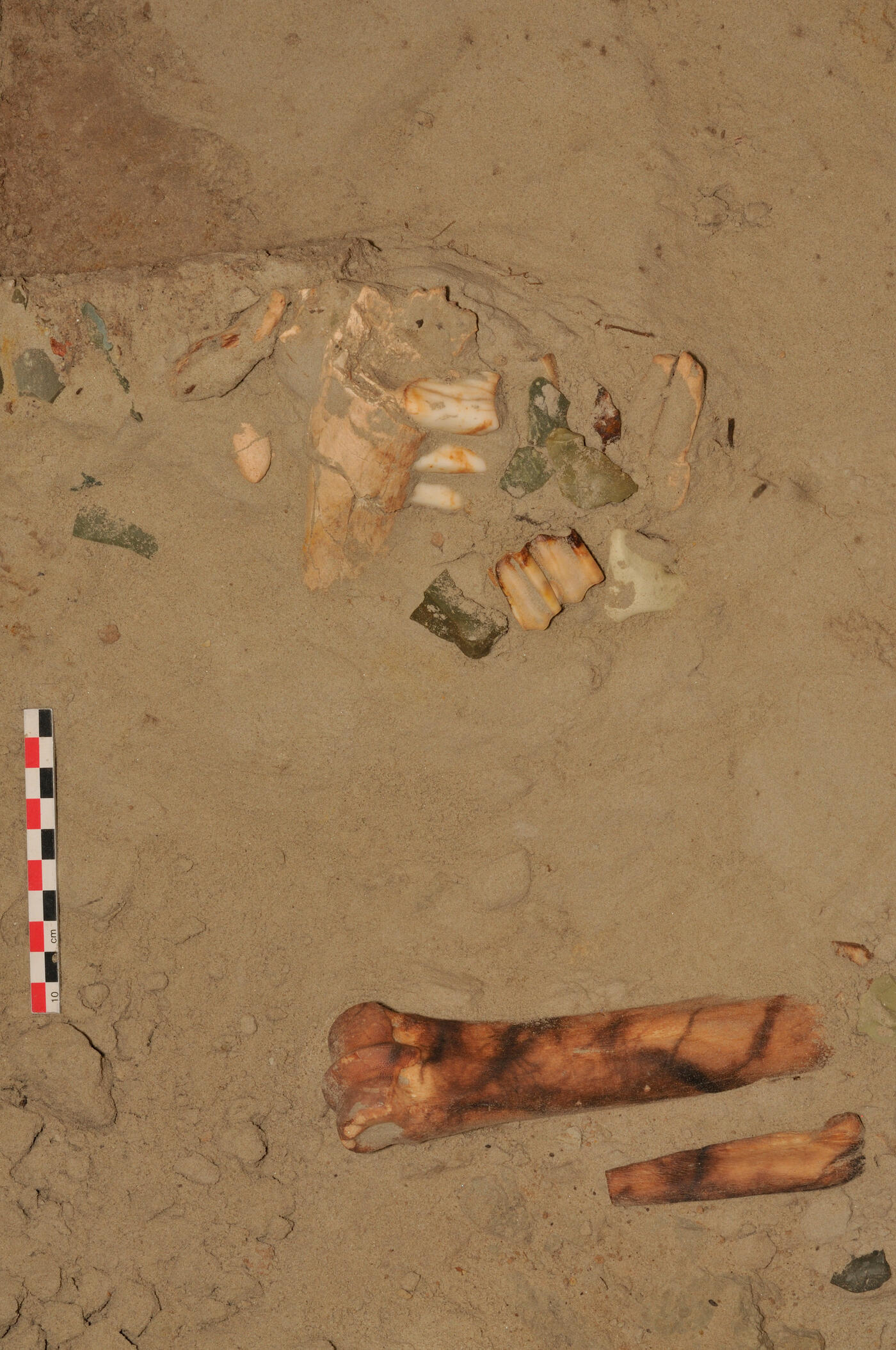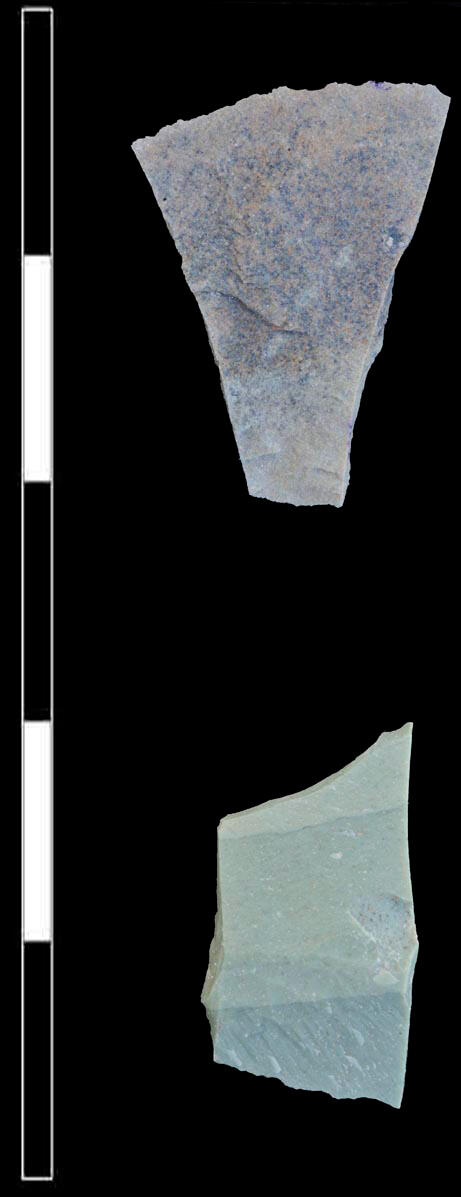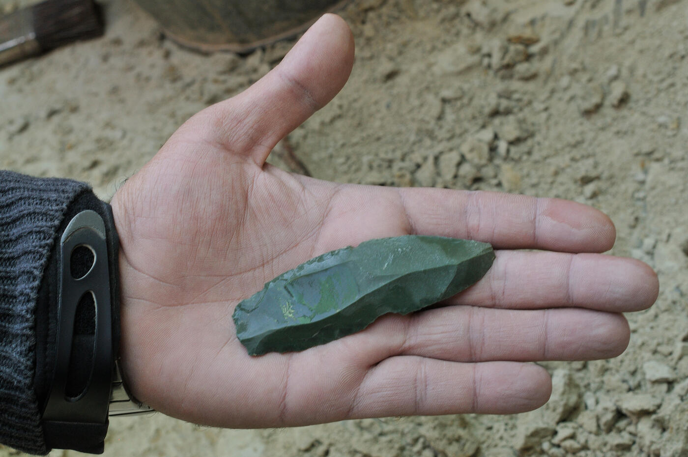 Enfin, au fond du sondage S2 (une ancienne fouille illégale), un quatrième dépôt a livré une riche concentration en artefacts lithiques et en vestiges de grands. Les analyses montrent que l’assemblage lithique présente des caractéristiques de l’épipaléolithique, comme de nombreux microlithes, mais aussi des pièces attribuables au Paléolithique moyen. Par ailleurs, l’assemblage faunique associe des vestiges osseux et dentaires sans traces d’altération à côté de vestiges très émoussés par les eaux. Si l’ensemble de ces données archéologiques et géologiques questionnent quant à la nature primaire de cet assemblage, elles permettent également de proposer une occupation préhistorique de la localité postérieure au Paléolithique. Les études se poursuivent.