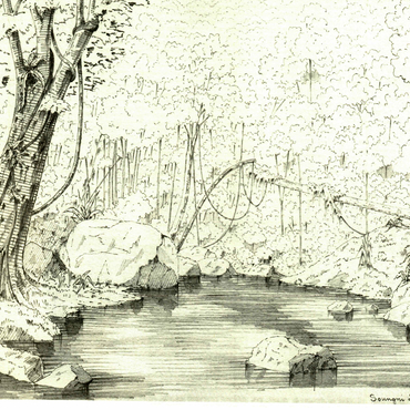 As Jacques de Morgan travelled through Perak, he produced topographical surveys and sketched the landscape. Helped in his task by the local population, he lived cheek by jowl with sedentary Malaysian villagers and nomadic tribes. Although subjective in his view of the exotic sights around him, he took a scientific approach to recording his observations and describing and collecting his discoveries.