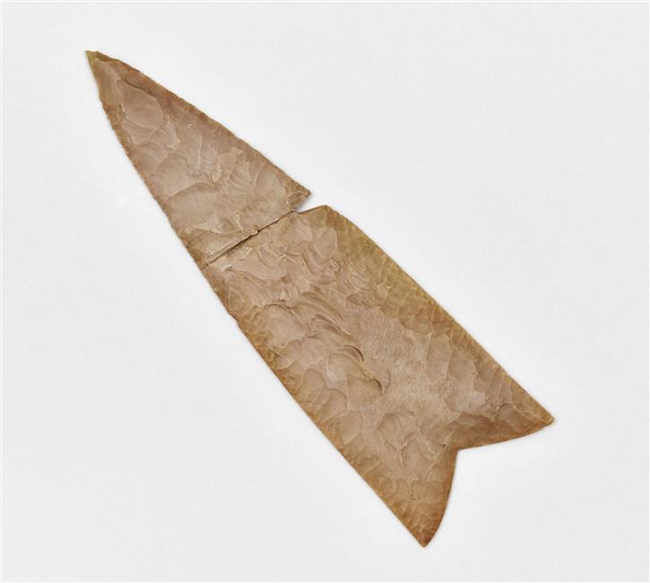Pointe de lance bifide, Nagada II, silex, El-'Amrah, musée d'Archéologie nationale de Saint-Germain-en-Laye (MAN83228).