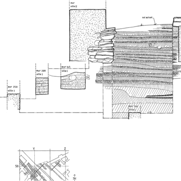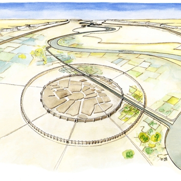 Tout en restaurant le canal de dérivation, les aménageurs ont d’abord procédé à un nivellement général en donnant au socle une forme légèrement conique de façon à assurer une pente régulière qui permette l’évacuation des eaux de pluie vers la périphérie. Une infrastructure compartimentée de 2 mètres de hauteur, qui ménageait l’emplacement des rues et remplissait leur sous-sol d’une chaussée absorbante, a été ensuite construite sur l’ensemble de la cité. Ainsi était assurée la stabilité de l’ensemble et la protection des édifices en briques crues. Le système défensif des origines était reconstruit, renforcé à l’aide d’un petit mur écran sur la digue extérieure, permettant la défense en première ligne par des archers.