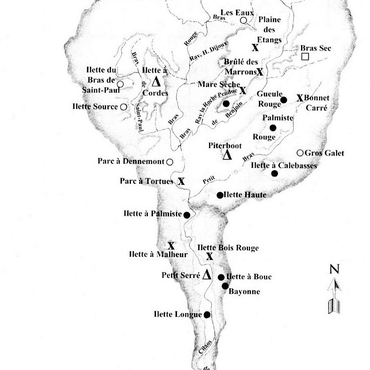 Outre cette anthropisation du paysage, les installations des Petits-Blancs vont laisser des traces, avec le développement de villages et de communautés. L’archéologie permet aujourd’hui de proposer une nouvelle lecture des Hauts de l’île dont il apparaît que tous les espaces de topographie un tant soit peu favorables, même d’accès difficiles, ont été occupés par le passé. En témoignent des sites dans le cirque de Mafate comme la Plaine-aux-Sables, Roche Plate ou le Plateau Picard, mais aussi dans des fonds de remparts avec l’ancien village de Cap Blanc ou les îlets du Bras de la Plaine.