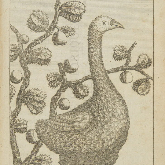 Le Solitaire, Estampe de François Leguat (1638-1735). Dans : "Voyage et aventures de François Leguat, & de ses compagnons, en deux îles désertes des Indes orientales" , t. 1, p. 98.
