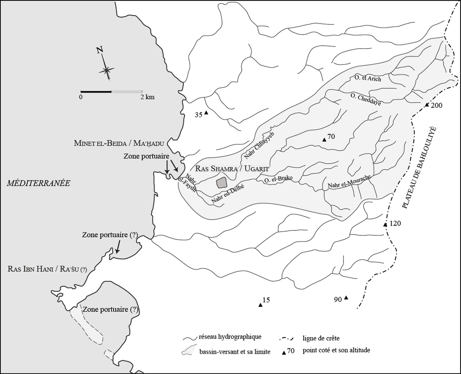 Carte schématique de la région de Ras Shamra
