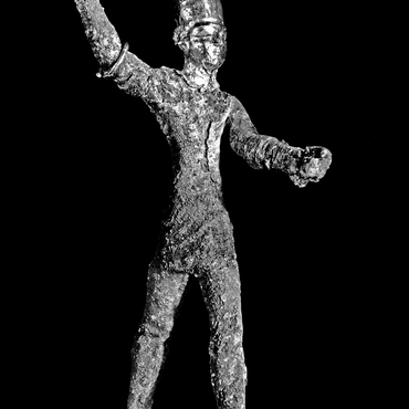 Ougarit a livré une importante quantité de sculptures en bronze, partiellement ou intégralement plaquées de métaux précieux tels que l’or, l’argent ou l’électrum. Caractéristique des cultures des âges du Bronze dans la région syro-palestinienne et anatolienne, cette technique semble reliée à l’expression imagée des panthéons de ces régions. En fonction de leur posture et de certains détails de leur iconographie, à Ougarit ces images ont souvent été interprétées soit comme des représentations du dieu de l’Orage, Haddou, connu sous son titre de Baʿal – maître –, soit comme une évocation du grand dieu du panthéon local, El.