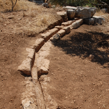 L’approvisionnement en eau constituait la contrainte majeure. La grande citerne la plus proche située à une vingtaine de mètres à l’est, à 5 mètres seulement en amont d’un réservoir intermédiaire, fournissait l’eau nécessaire. Cette citerne est une ancienne carrière allongée à ciel ouvert qui a été partiellement couronnée sur son pourtour d’un mur. Elle a été recreusée en son milieu d’un autre volume en forme de cloche. Elle recevait par une conduite, réalisée par une série de blocs encastrés les uns dans les autres et creusés d’une rigole sommitale, l’eau provenant des trois carrières-citernes supérieures.
