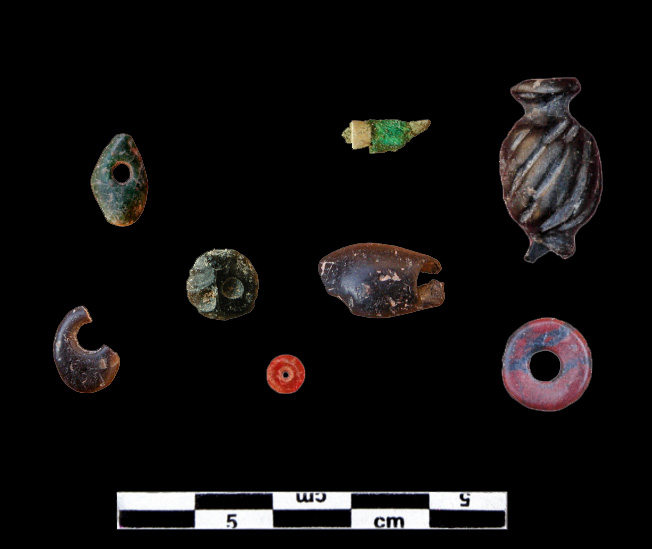 Des matériaux très divers, comme l’obsidienne, la turquoise ou la cornaline, ont servi à la réalisation des perles et pendentifs ornant les parures des habitants de Tell Feres.