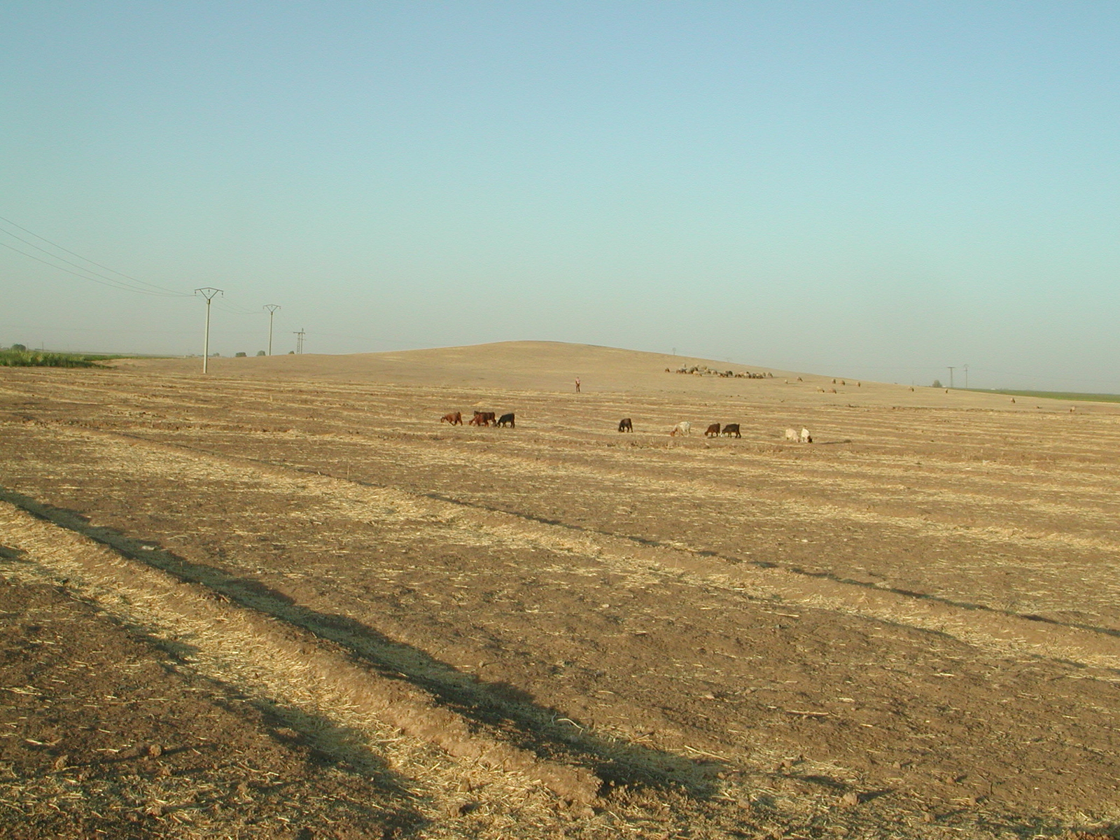Les dépôts archéologiques, majoritairement en terre crue, forment un petit mont, un « tell » qui s’élève à 8 mètres au-dessus de la plaine environnante.
