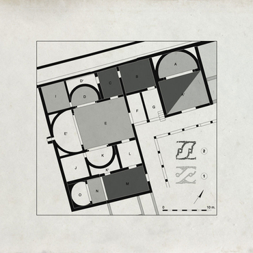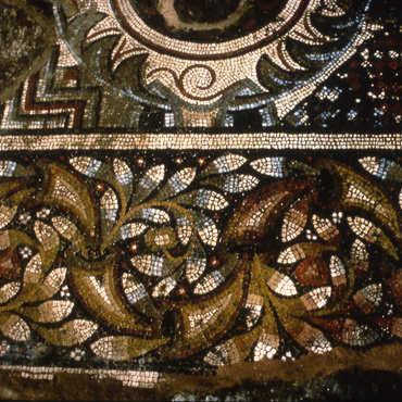 Les pièces secondaires offrent des compositions du style arc-en-ciel, qui se développe en Syrie à partir de la fin du IVe siècle. Ces mosaïques se caractérisent par un répertoire plus strictement géométrique, ainsi que par des motifs propres, comme ces lignes brisées et accolades en dégradé de couleurs. La composition en octogone développé de la pièce B, est fréquemment utilisée à Antioche. La trame en croix de U des pièces J et E font partie des rares exemples gaulois d’un schéma décoratif en vogue en Méditerranée orientale.